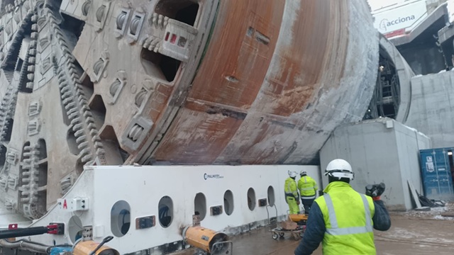 Lo scudo (peso 2500 t e diametro 15 m) della TBM è stato caricato sull’Airmover il 22 gennaio: la rototraslazione di tutti i carri backup ha richiesto circa 3 settimane. Sono state utilizzate 4 gru a portale pesanti 320 t, 350 t, 400 t, e 480 t. Le condizioni meteo avverse - con temperature fino a -18°C - hanno reso difficile l’uso dei compressori. Per evitare il congelamento dell’Air Mover 2500 con il suolo nei tempi di fermo macchina sono stati utilizzati dei riscaldatori. La pavimentazione doveva essere sempre liberata da neve e gelo.